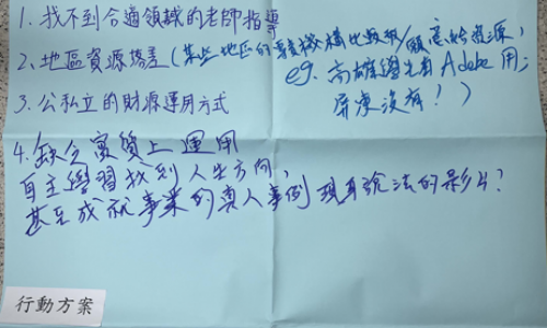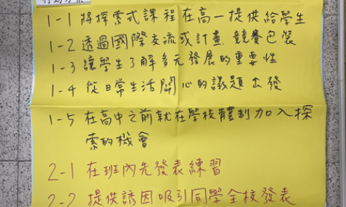 審議會議這樣的環境中學生與老師個題提出自己的觀察,最後由學生提出當前問題的可能解決方案,實現真正的師生端對談!後續也整理出六點較為具體的行動方案: